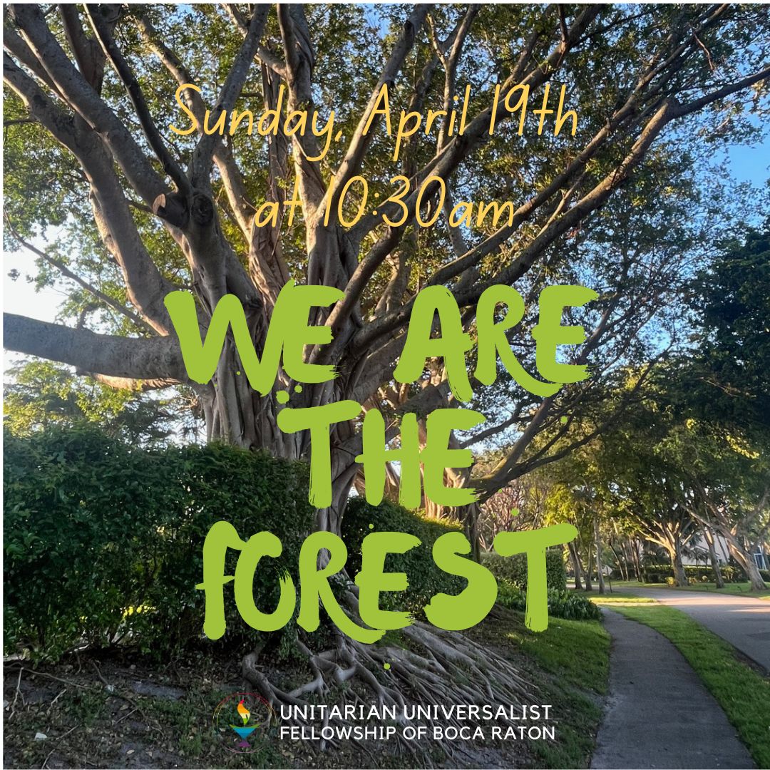 | 🌳🌲🌴 Have ever meditated on the beauty of a tree? We are like trees in the quiet ways that matter most. We stretch toward light even after storms have bent us. Like branches, we reach for others, sometimes breaking, sometimes blooming, always daring to grow again. Explore what kind of tree you are during our Earth Day service on Sunday, April 19th at 10:30 AM with service leader Donna Musial. | |